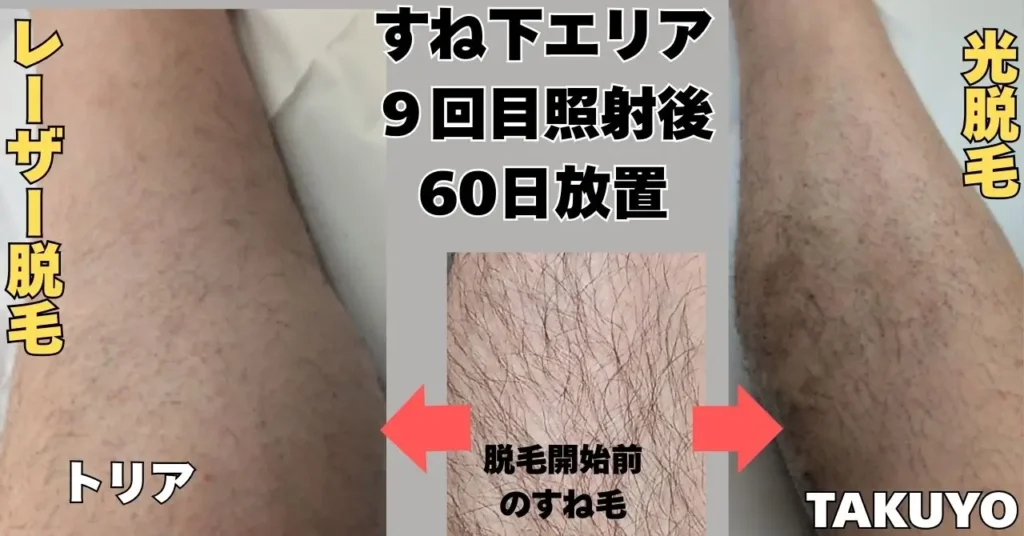 特にすね下エリアに関しては、家庭用光脱毛器よりもレーザー脱毛(トリア)の方が、